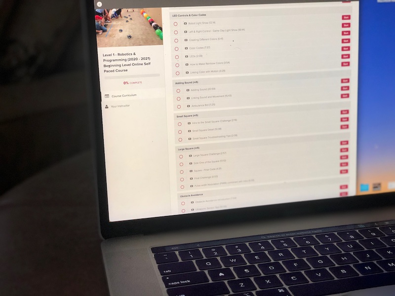 We offer printed and online materials for the instructors, access to video lesson to help get you up to speed, teach the teacher course, as well as, supply kits that include the robots and other items needed for the course. Our goal is to empower you to host an incredible class and we want to support you in that endeavor.